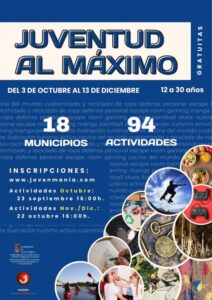 Ahora en Santa Mª de Cayón – en Sarón dentreo del  programa organizado desde la Dirección General de Juventud ponemos en marcha «Juventud al Máximo», un programa gratuito con 94 actividades y más de 1.300 plazas para jóvenes de 12 a 30 años, programadas del 3 de octubre al 13 de diciembre en 18 municipios de Cantabria
