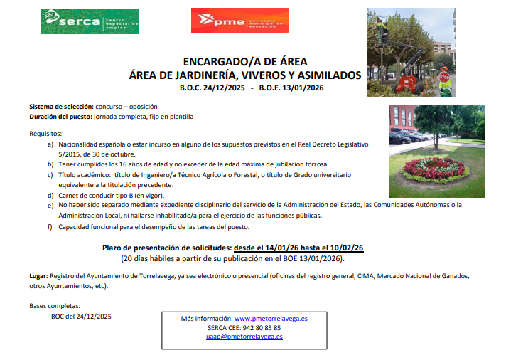 Se convoca una plaza de Encargado/a de Área mediante concurso-oposición.