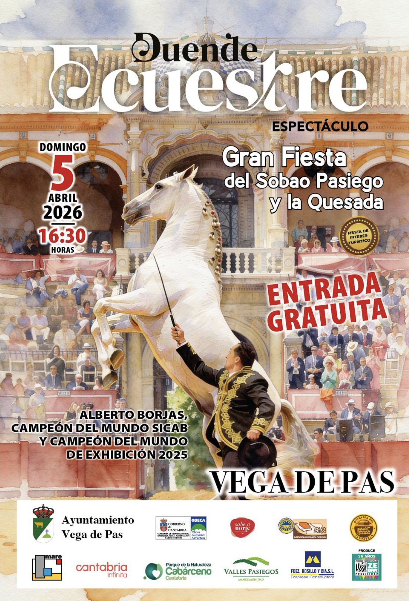 12:00 h. Pasacalles con el Grupo de Danzas San Sebastián de Reinosa y caballos del espectáculo DUENDE ECUESTRE. Salida desde el bar merendero ANDRESITO.